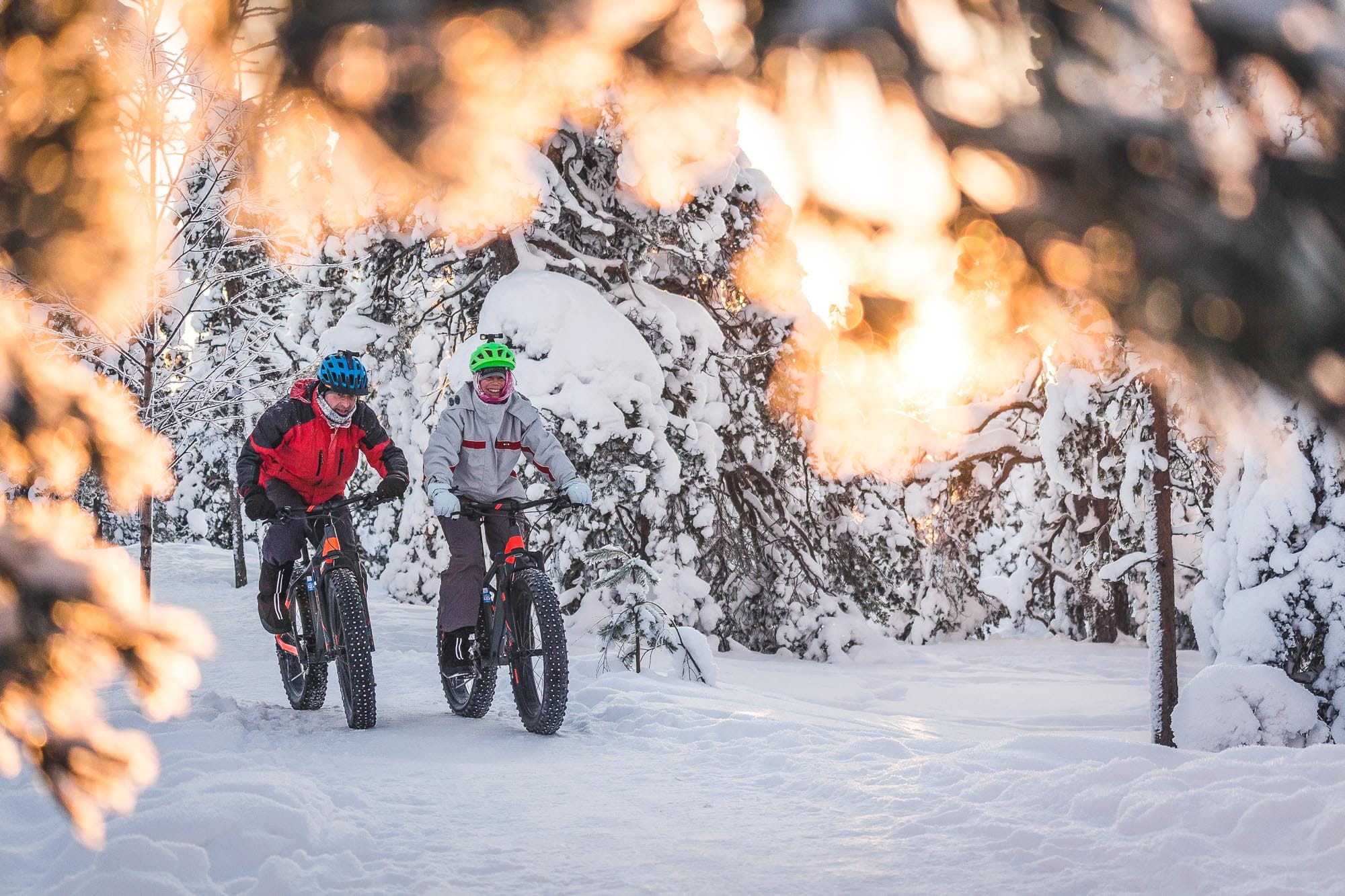 Join us for a group ride every Monday, Wednesday, and Friday, and discover the breathtaking winter landscapes of Rovaniemi. Our guide will lead the group to the top of Ounasvaara Hill, where you can enjoy the magic of winter cycling along scenic snow-covered trails.